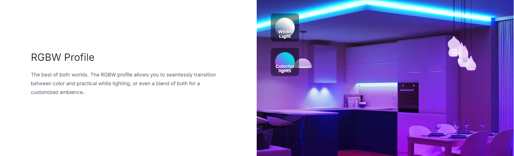 A compact and versatile RGBW controller designed for effortless control of any LED strips. With support for RGBW, RGB and Light profiles.